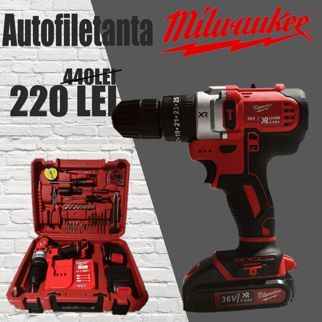 Mașină de găurit și înșuburat, 36V, 2 acumulatori li-ion, 5 Ah, 50 Nm,